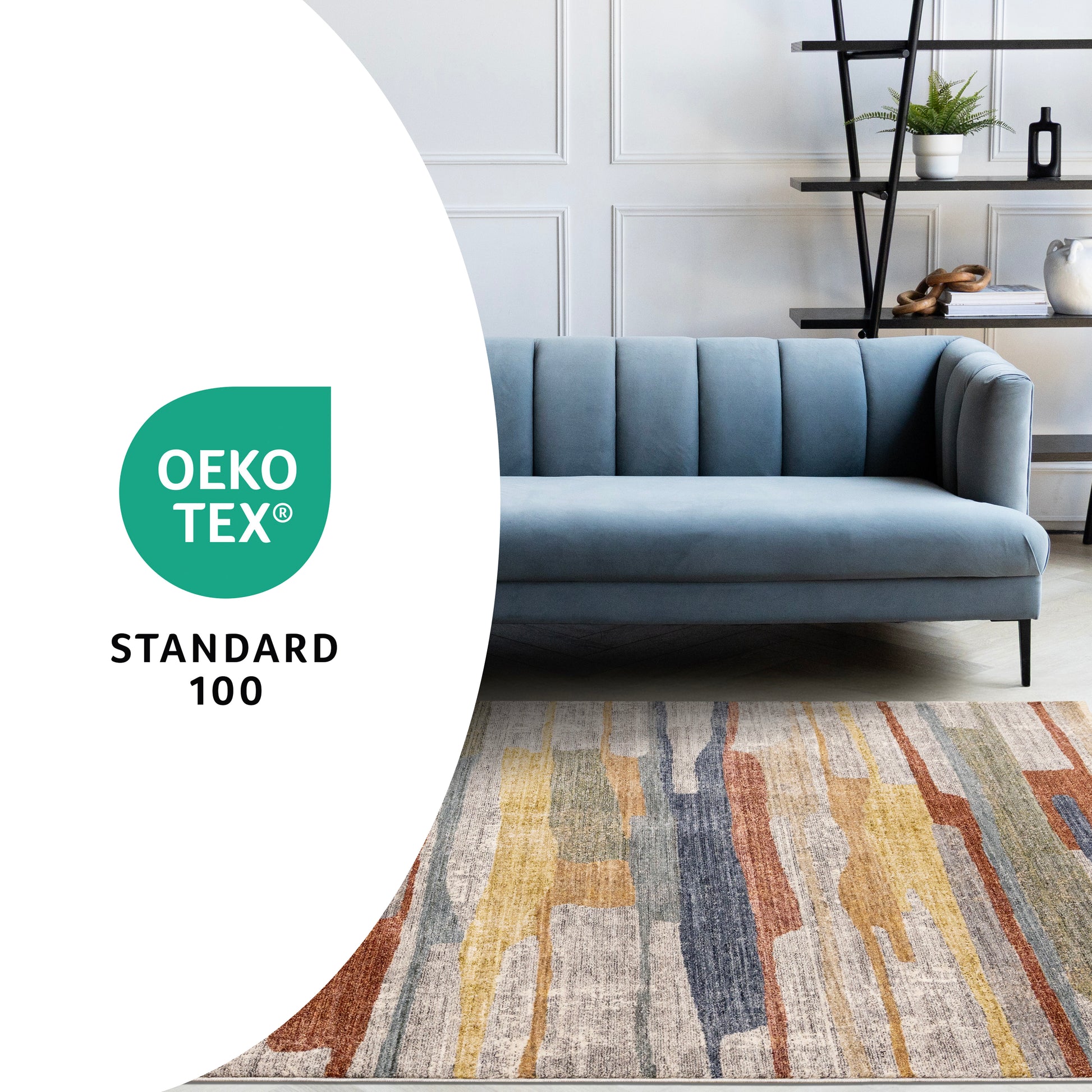 This rug is made from polyester, a material that is stain resistant, and adds dimension and durability to its designs.