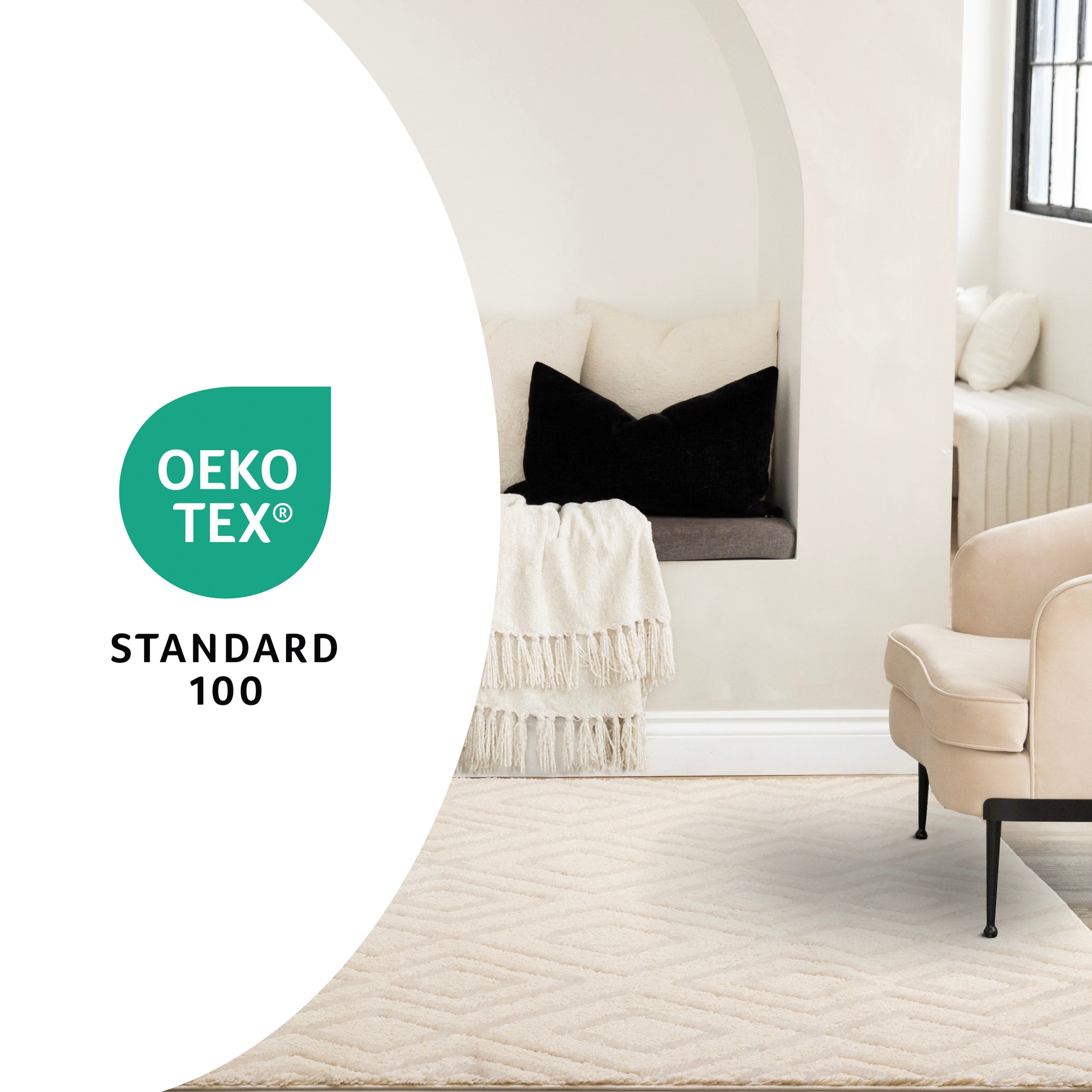 This rug is made from polyester, a material that is stain resistant, and adds dimension and durability to its designs.