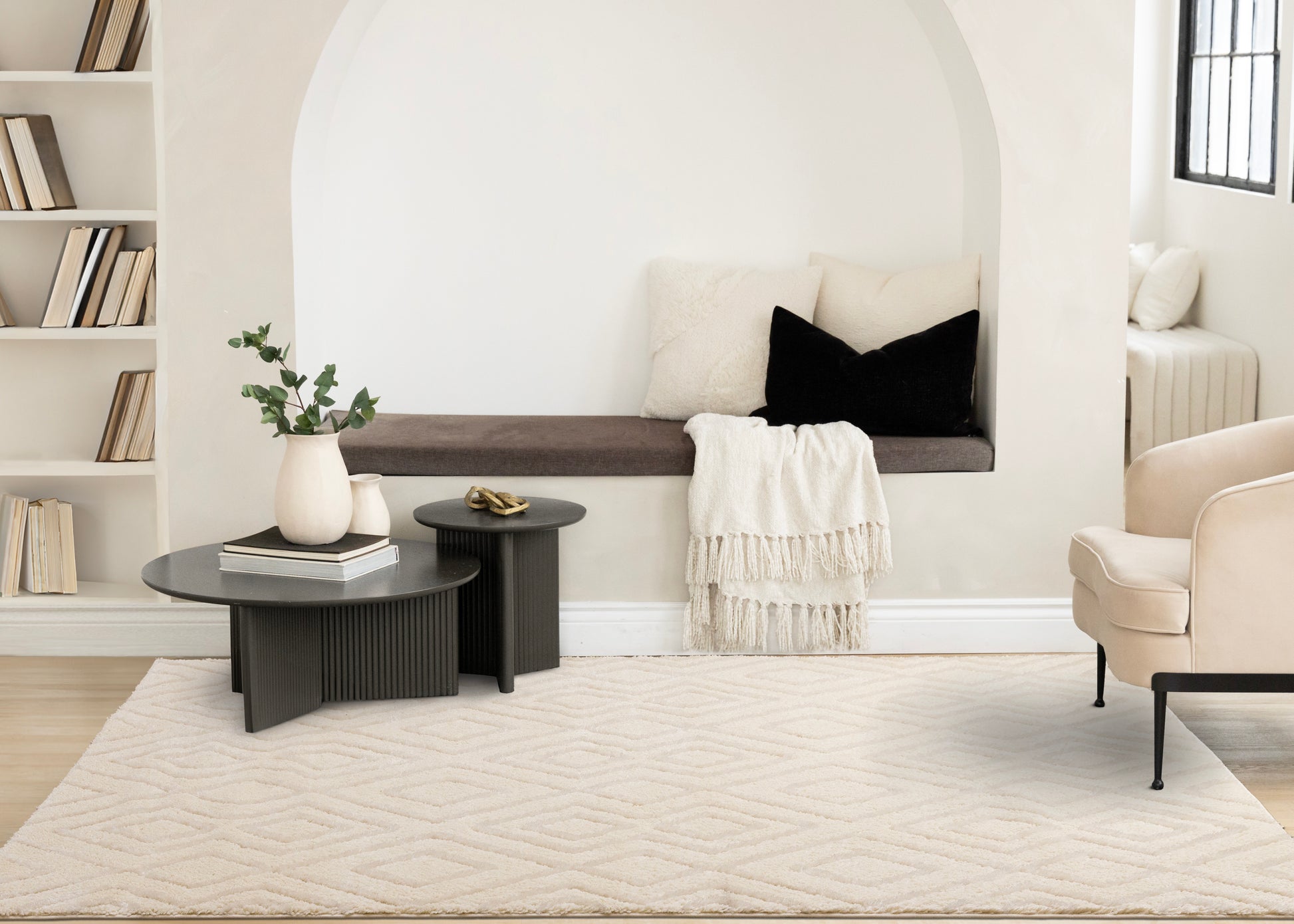 The Sully collection features contemporary designs with an added shimmering effect of the silky yarn against a plush soft shag. Neutral greys and cream tones, it’s sure to cozy up your space with a modern touch.