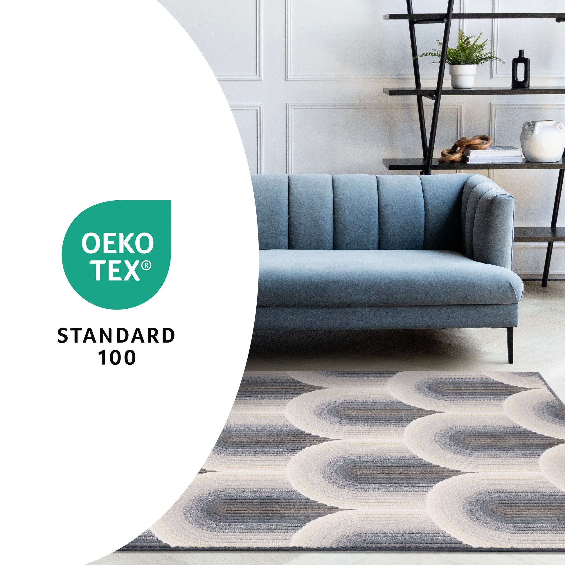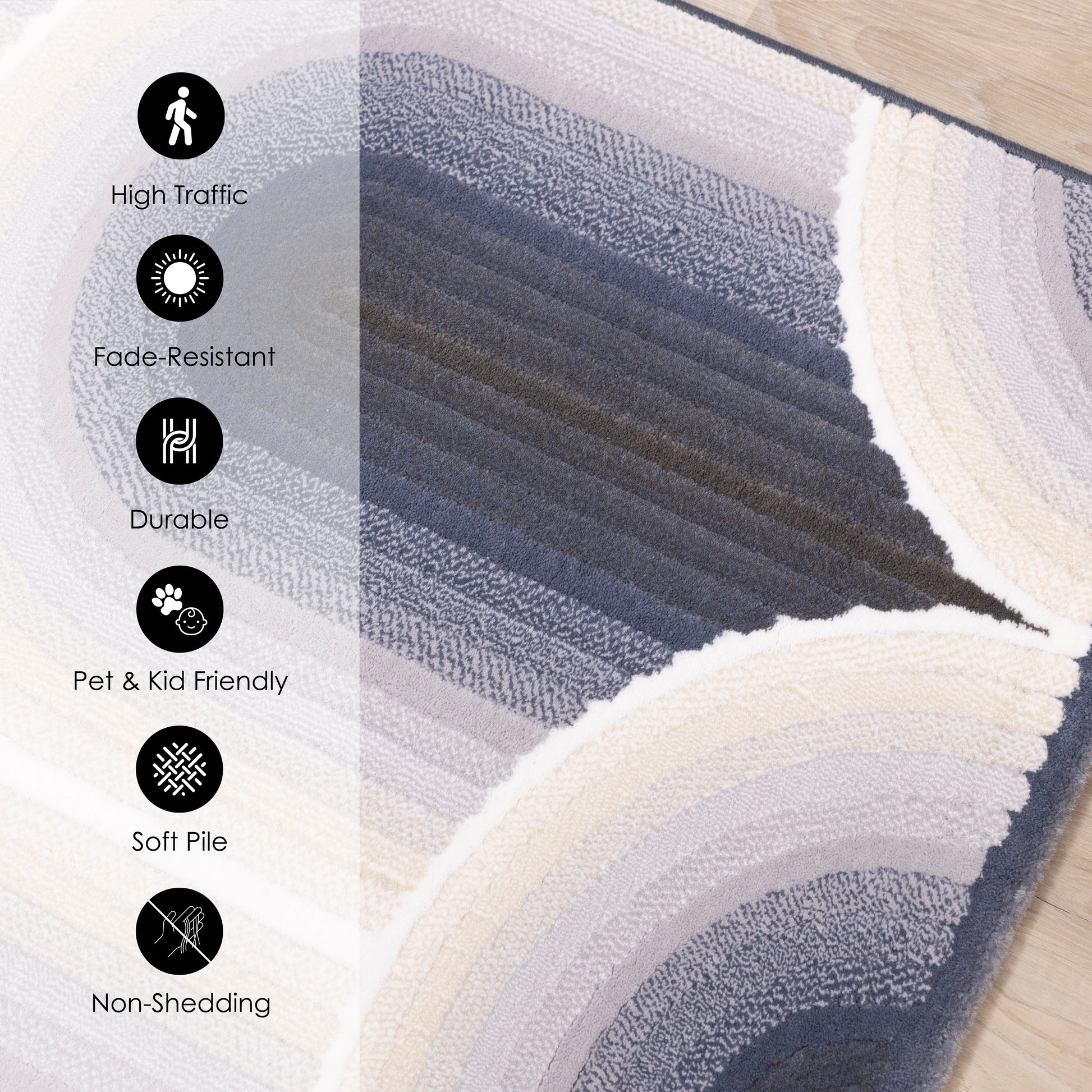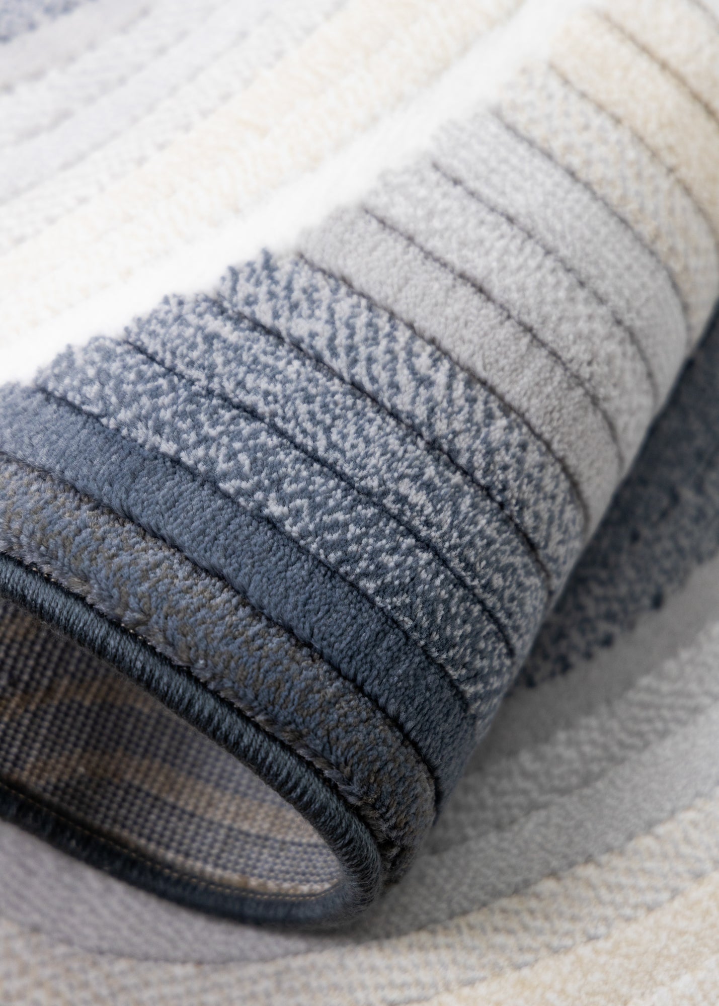 Dense pile paired with striking drop stitch design give the Ella collection a captivating appeal. Soft colours infuse these bold patterns for a modern look and make a stunning showpiece for any home. Made with high quality Belgian construction for beauty and longevity.