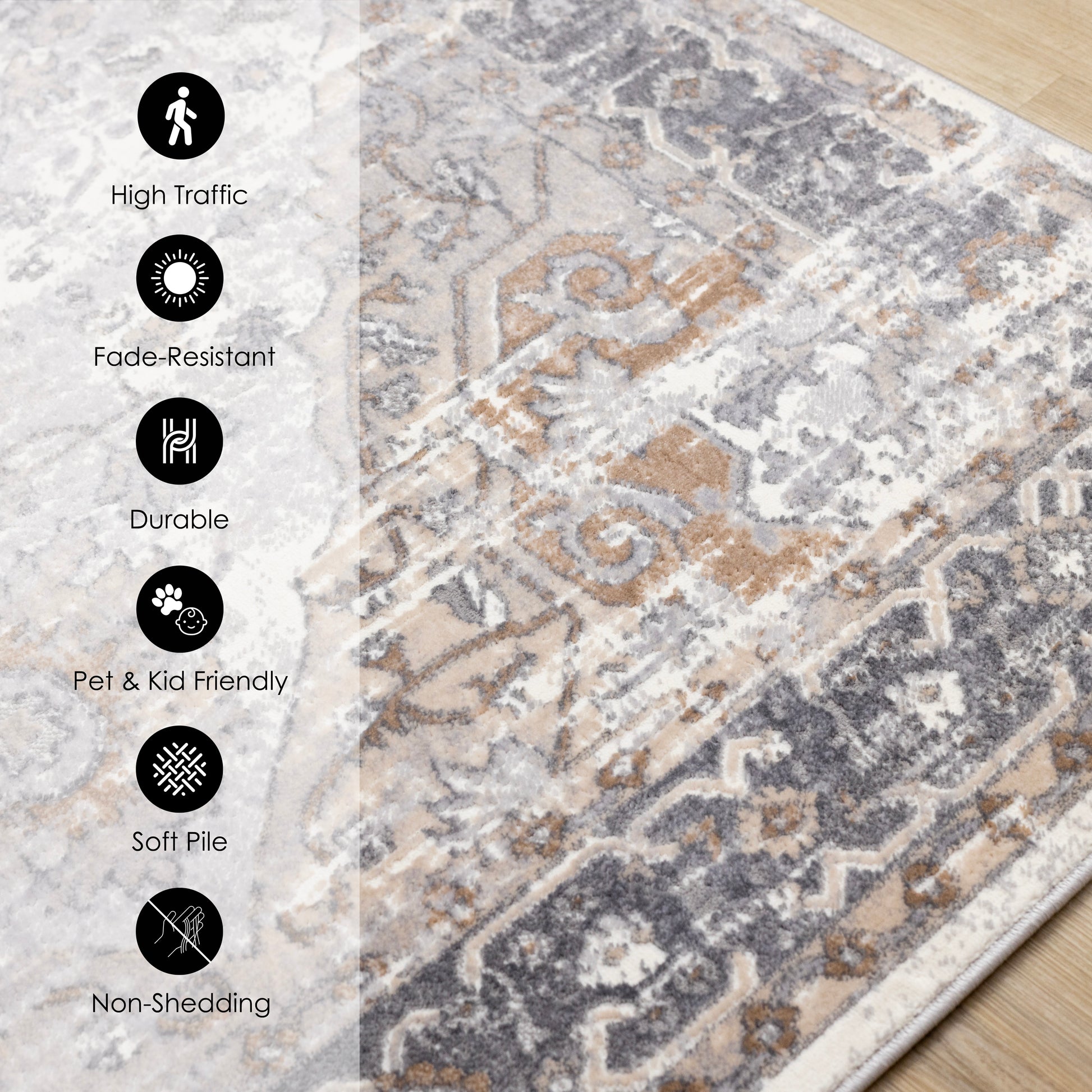 This rug is made from high quality heatset polypropylene, a durable fibre which will help the rug look amazing for years to come. This rug is stain resistant and the colours will not fade.