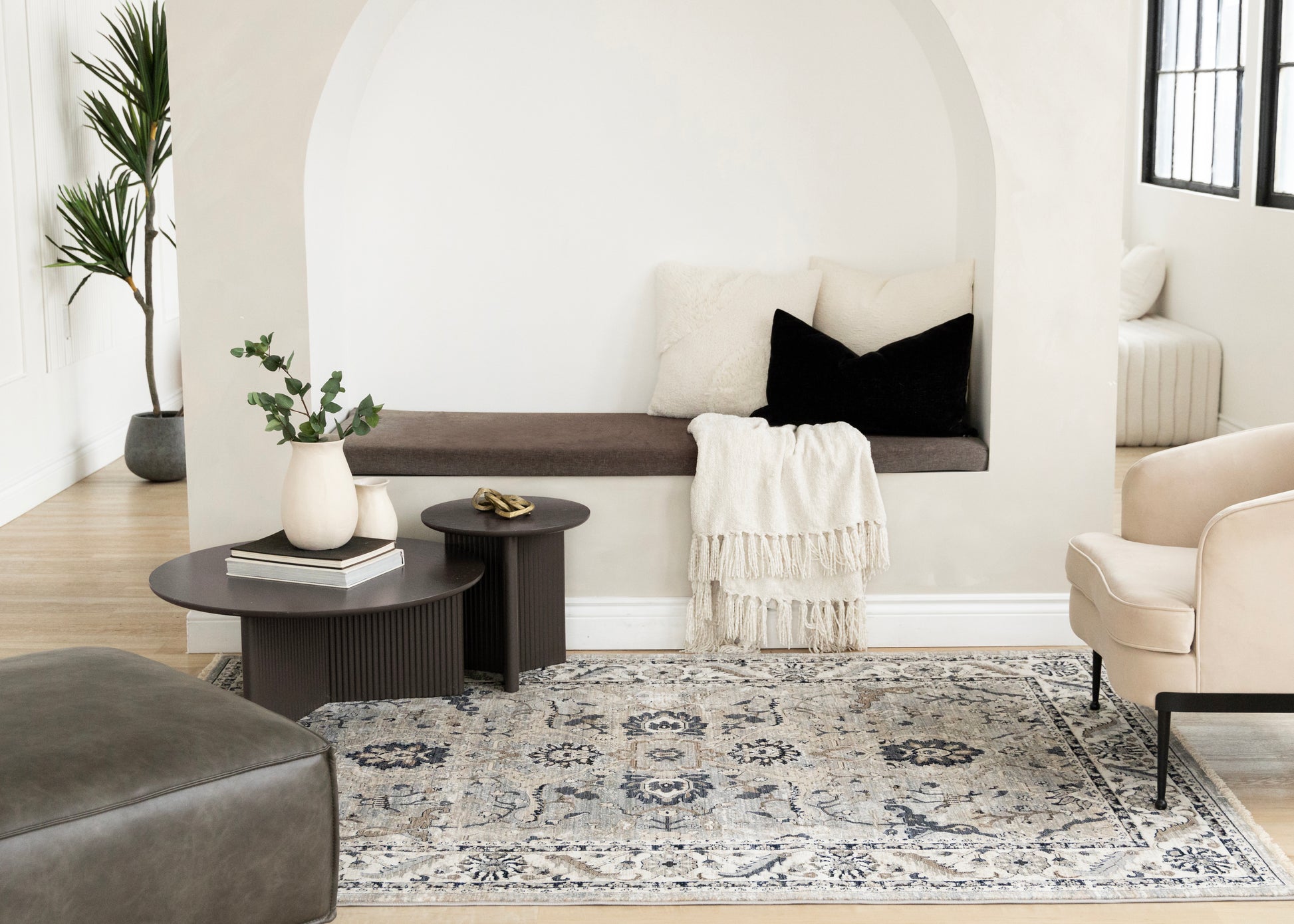 The combination of dense pile, drop stitch and double pointing give the Samira collection a complex and inviting texture. The intricate weaving and authentic tassels enhance the traditional designs. Reds, Blues, Browns and Greys are expertly combined to give Samira a warm and welcoming aesthetic.