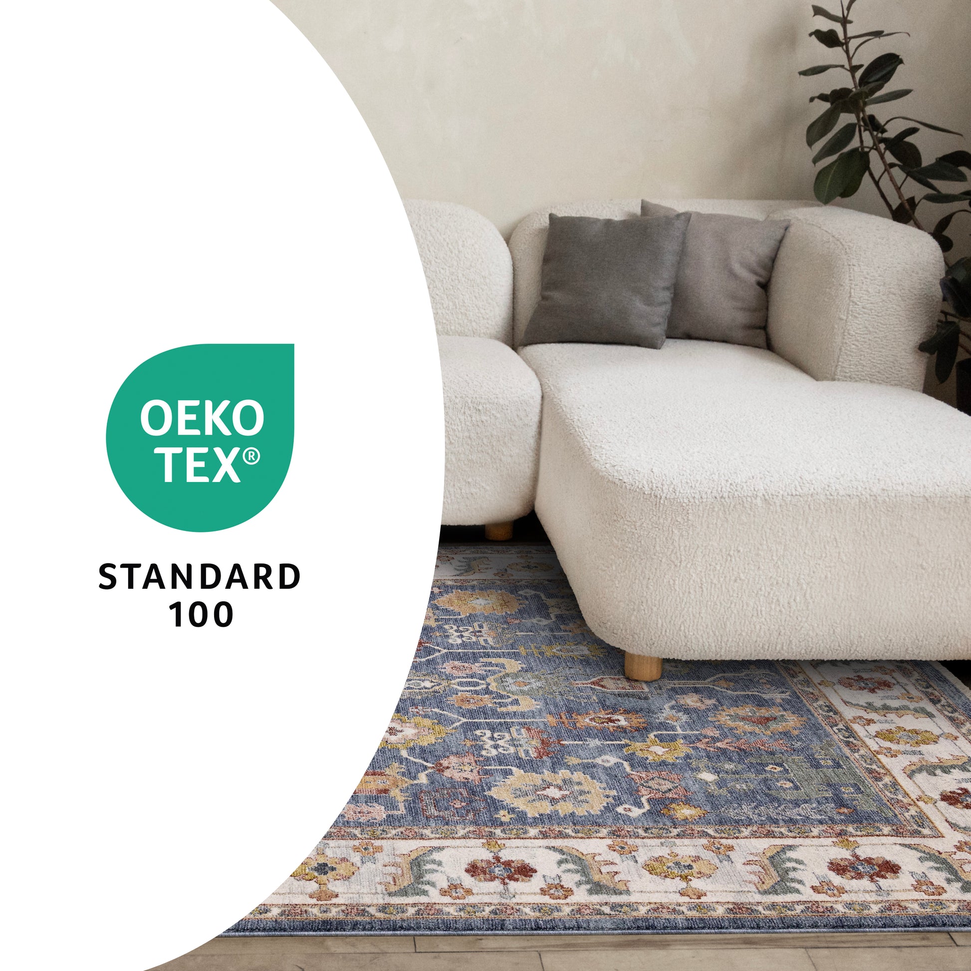 This rug is made from polyester, a material that is stain resistant, and adds dimension and durability to its designs.