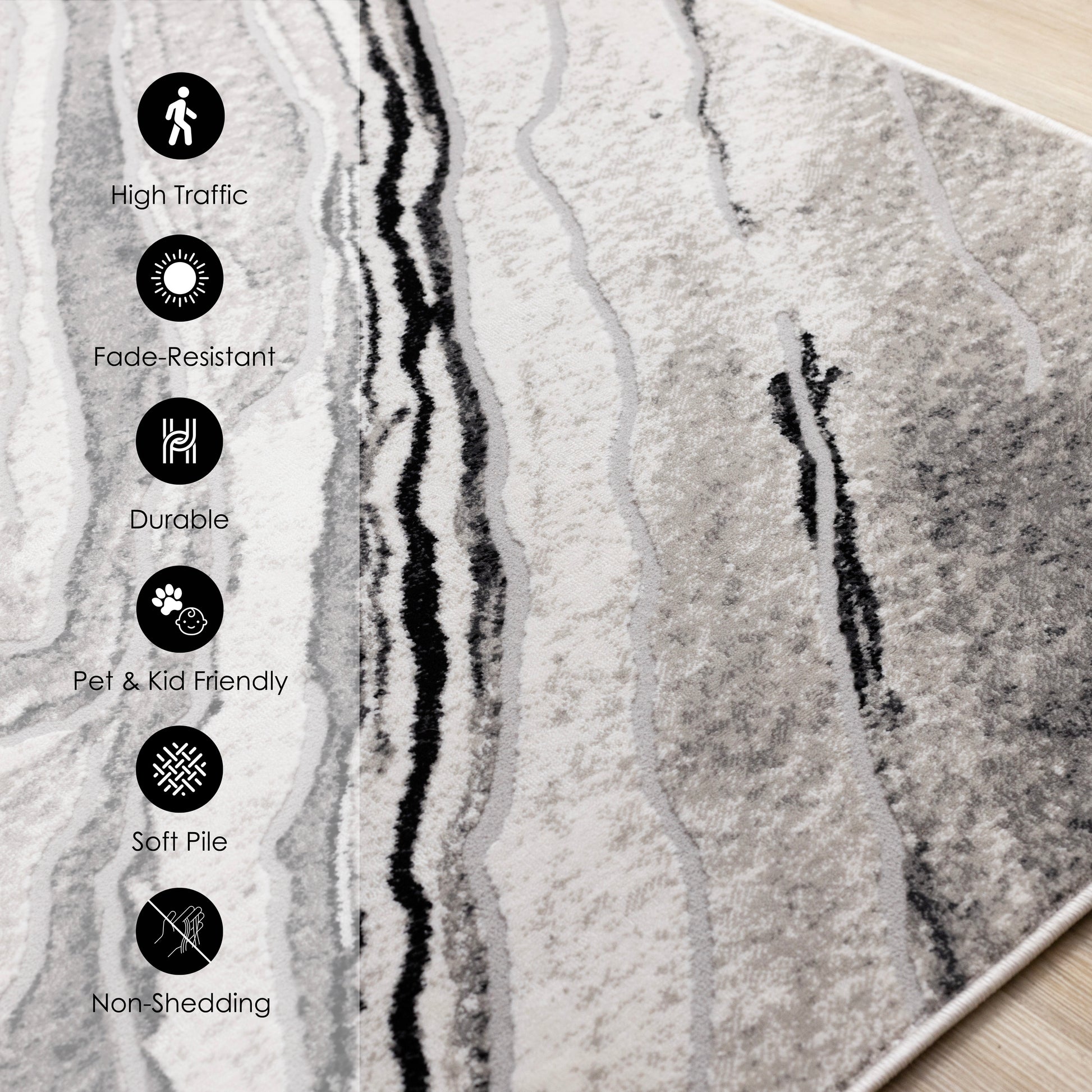 This rug is made from polyester, a material that is stain resistant, and adds dimension and durability to its designs.